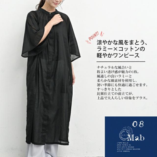 涼やかな風をまとうラミー×コットンの軽やかロングワンピース。 XL ゆったりサイズ ぽっちゃり女子 プラスサイズ 大きいサイズ レディース 7分袖ワンピース ロング丈ワンピース ロングワンピース シアーシャツワンピース ロングシャツ 羽織り ロング丈 マキシ丈 7分袖 フレアスリーブ ラグランスリーブ バンドカラー 前開きボタン フロントボタン 隠しボタン ラミー素材 綿混 透け感 シアー感 sheer ポケット 08mabブランド 春服 夏服 春物 夏物 春ワンピース 夏ワンピース 春ワンピ 夏ワンピ ゆったり ラクラク 体型カバー 大人 カジュアル ナチュラル フェミニン きれいめ かわいい かっこいい 着こなし おしゃれ 定番 春コーデ 夏コーデ ファッション 大きめ 女性 婦人用 ミセス 30代 40代 50代 2025 夏新作 春 夏 黒 灰色 黄色 M L LL 9号 11号 13号 mab-ss-op0003