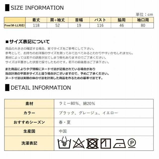F【M-LL対応】:着丈118 肩+袖丈52 首幅19 バスト116 脇周46 袖口周80