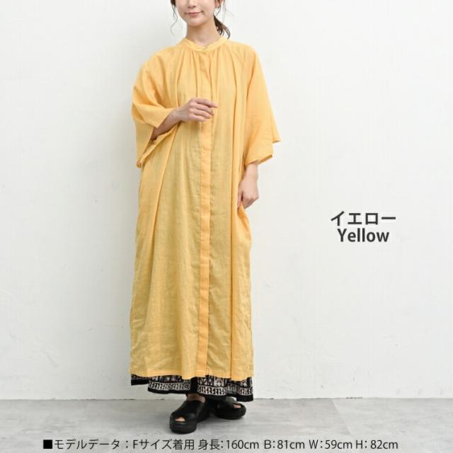 涼やかな風をまとうラミー×コットンの 軽やかロングワンピース。 比翼仕立ての前立てが上品で大人らしい印象をプラス。 ナチュラルな風合いと 程よい透け感が魅力の一枚です。 |