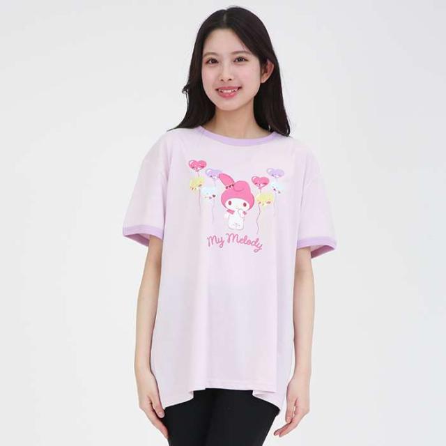 パステルバルーン マイメロディ リンガーTシャツ (PP) M〜Lサイズ レディースサイズ サザック SAN-1941ML_PP