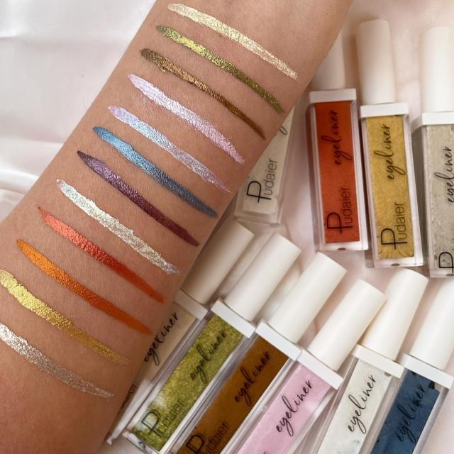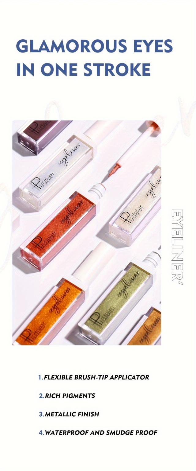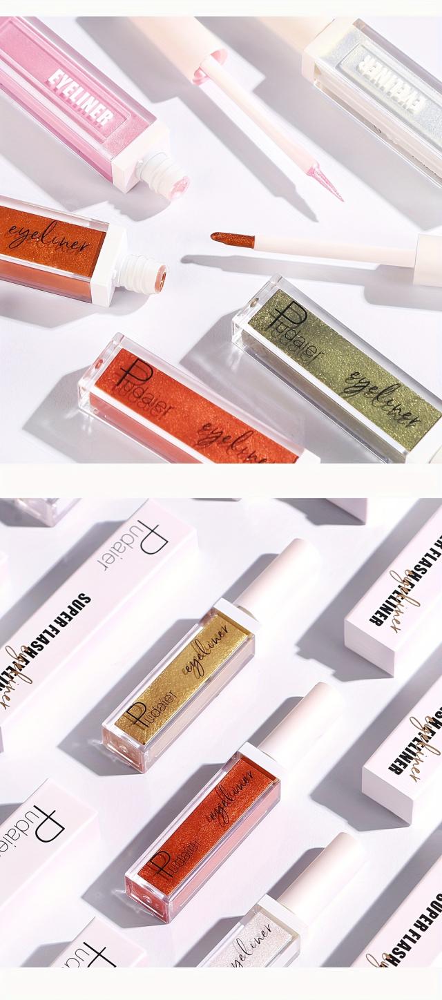 パールグリッターリキッドアイライナーセット - 防水、速乾、にじみ防止、初心者&プロ向け、ゴールデンシマー付き - 理想的なクリスマスギフト
