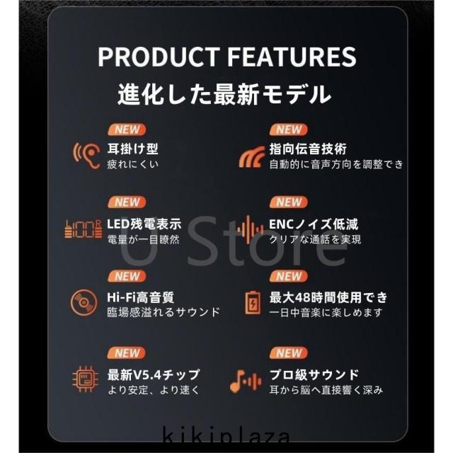2025年新登場 ワイヤレスイヤホン 耳掛け型 イヤホン イヤフォン 右耳 片耳用 両耳 左右分離 究極のフィット感 オープンイヤー Bluetooth5.4 マイク付き ios iPhone/Android適用 Type-C充電 Type‐C急速充電 パワフルな低音 IPX7防水性能 耳を塞がない マイク内蔵 簡単操作 アプリ ブラック スポーツ 音楽 ゲーム Hi-Fi音質 自動ペアリング タッチコントロール ブルートゥース 超軽量 超長待機 通勤 通学 プレゼント お歳暮ギフト