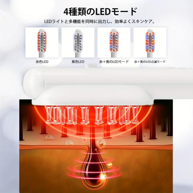 ☆この電気ブラシは赤と紫の2色のLED光を特徴としており、肌の状態