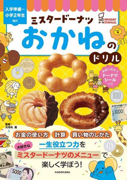 お金の使い方、計算、買い物のしかた。一生役立つ力を大好きなミスタードーナツのメニューで楽しく学ぼう!入学準備〜小学2年生向け。学習に役立つドーナツシールつき。