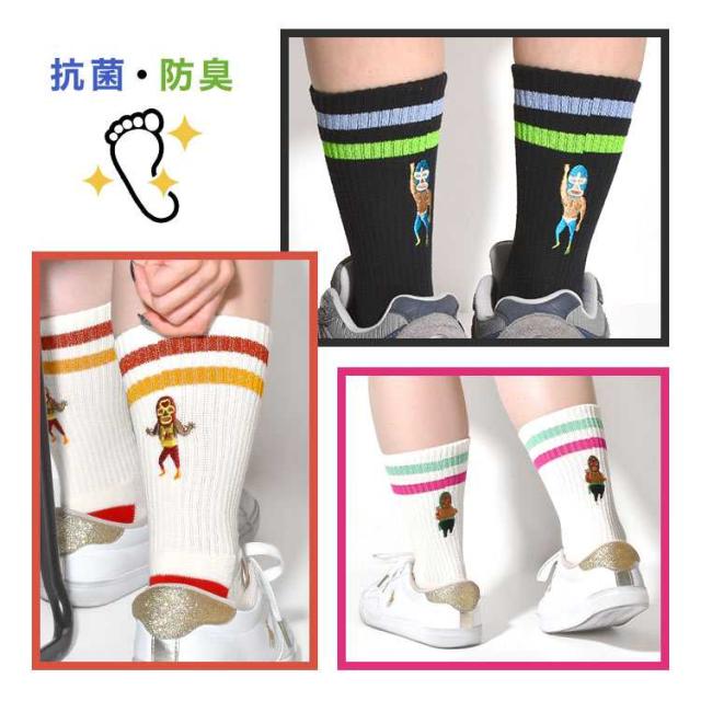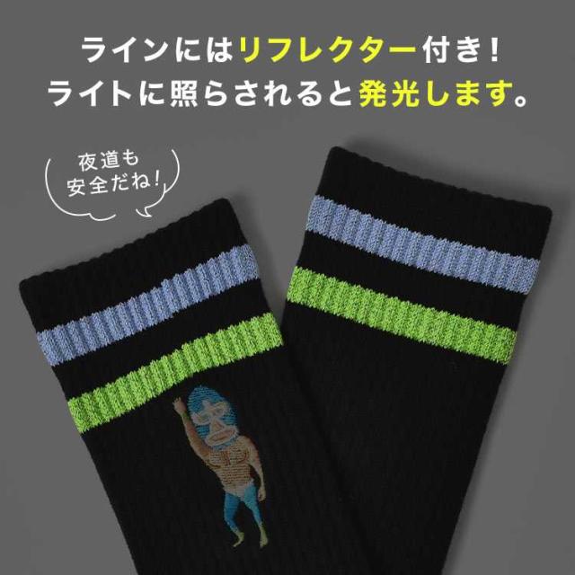【覆面レスラーリフレクションライン刺繍ソックス】