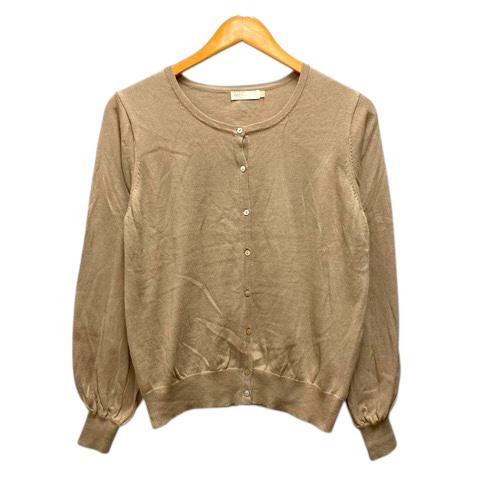 【中古】アースミュージック&エコロジー EARTH MUSIC & ECOLOGY カーディガン クルーネック コットン 無地 長袖 M ベージュ レディース
