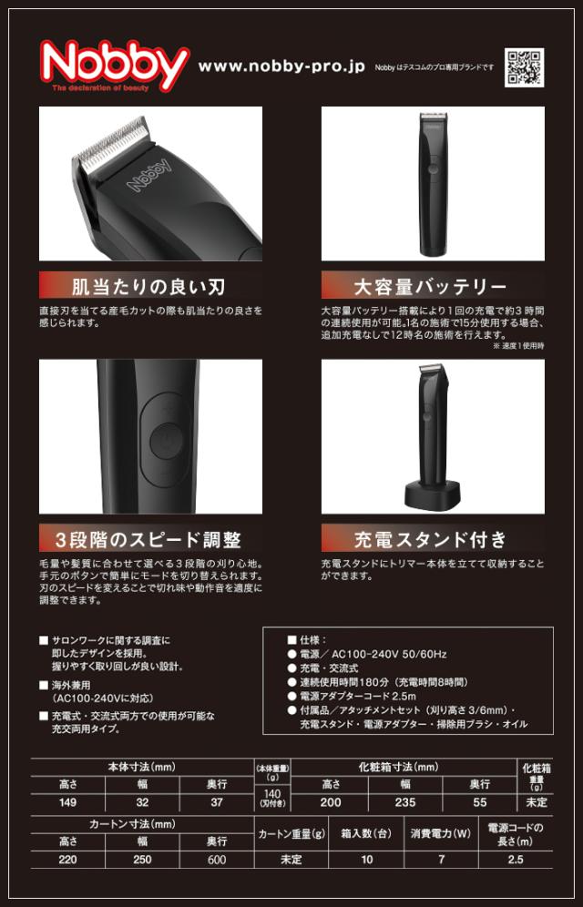 バリカン Nobby トリマー NBT90 (テスコム ノビー セルフカット フェードスタイル フェード クリッパー ハイパワー 静音 おしゃれ)