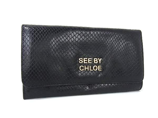 ■美品■ SeeByChloe シーバイクロエ パイソン型押しレザー 二つ折り 長財布 ウォレット 札入れ 小銭入れ ブラック系 DI5872