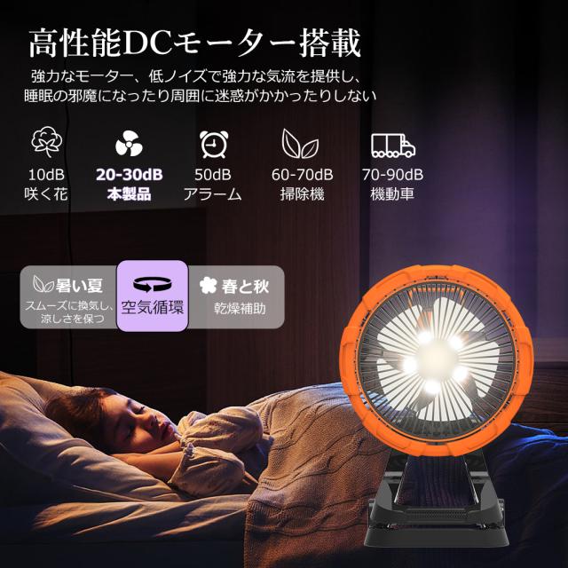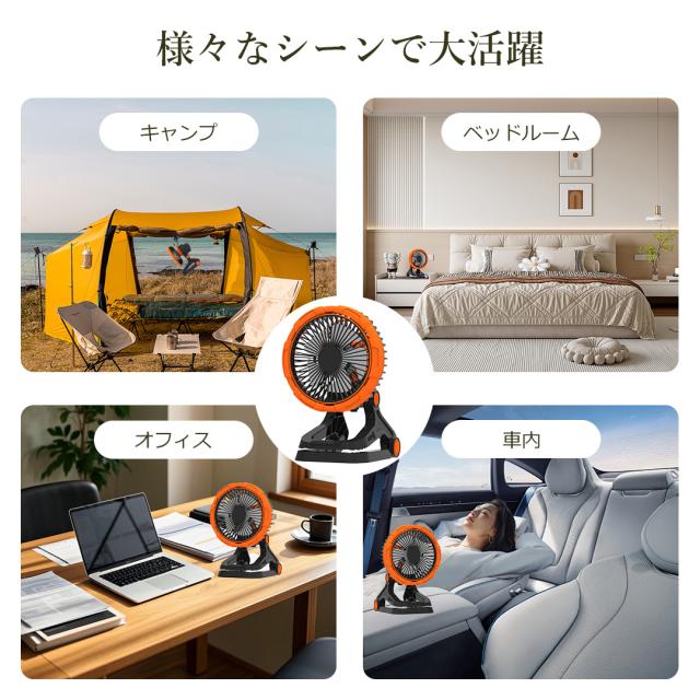 - キャンプ、ベッドルーム、バーベキュー、旅行、コンサート、展覧会、車内、運動会、学園祭、花火大会、お祭りなど様々なシーンで活躍します。コンパクト軽量で持ち運び簡単、静かに運転、強力送風、モバ充も可能です。どんな場面でも快適さを提供します。