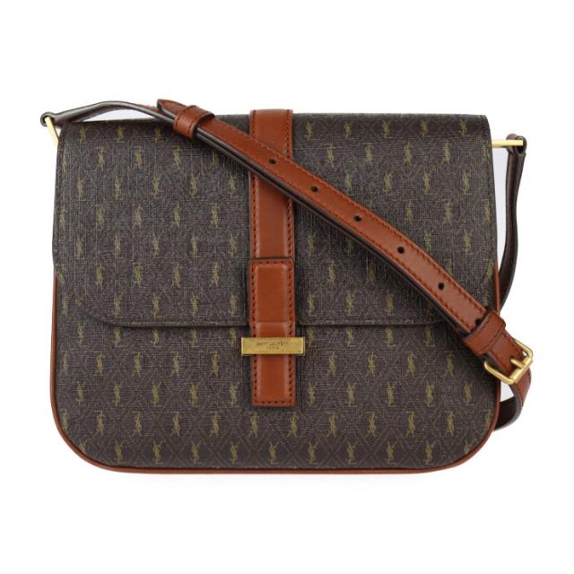 超美品 サンローラン サッチェル ル モノグラム ショルダーバッグ 568604 PVC レザー ブラウン系 YSL 【本物保証】