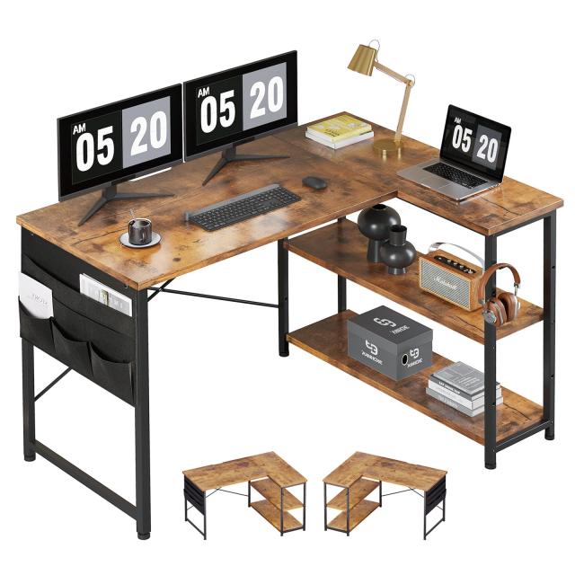 YeTom l字デスク ゲーミングデスク 幅120cm pcデスク コーナーデスク 棚板高さ調節可能 収納袋付き L字型 PC 勉強机 作業 在宅勤務 リモ