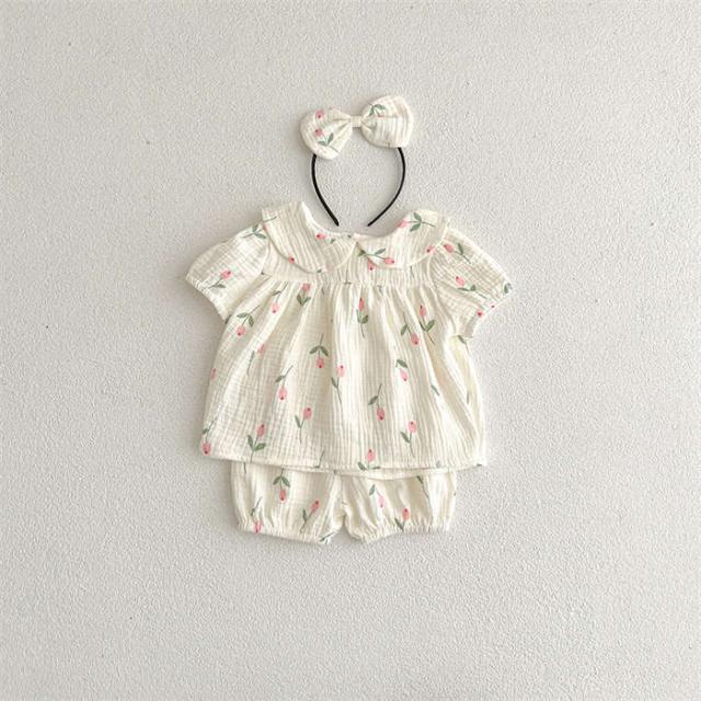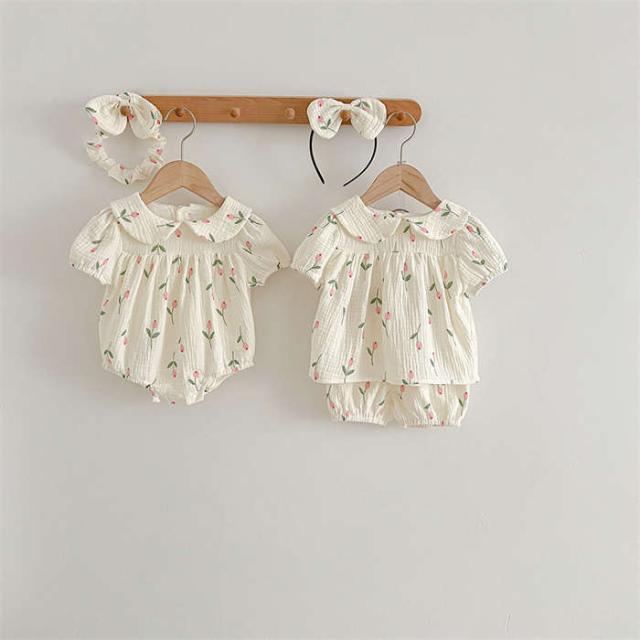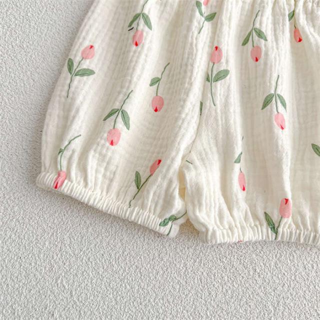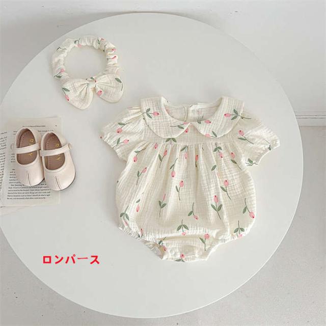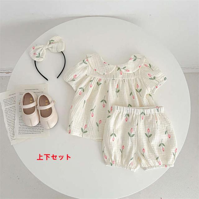 子供服 Tシャツ パンツ 女の子 ロンパース 半袖 花柄 セットアップ ベビーロンパース オールインワン 上下セット 2点セット