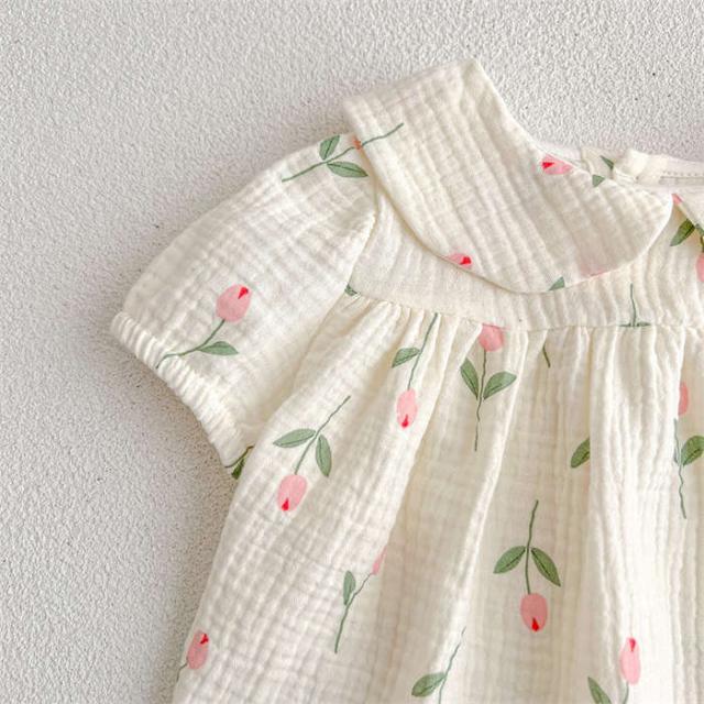 商品名:子供服 Tシャツ パンツ 女の子 ロンパース 半袖 花柄 セットアップ ベビーロンパース オールインワン 上下セット 2点セット ベビー服 キッズロンパース 新生児 可愛い 結婚式 七五三 記念日 誕生日 パーティー 夏 66 73 80 90 100