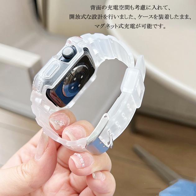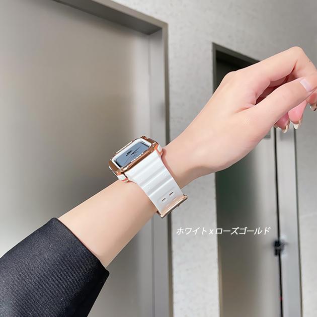 アップルウォッチ 9 SE バンド 女 腕時計 続々入荷中 38 40 41mm 42 44 45mm クリア クリアxローズゴールド ホワイト ホワイトxローズゴールド ピンクベージュ ブラック ブラックxローズゴールド ブラックxゴールド