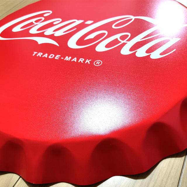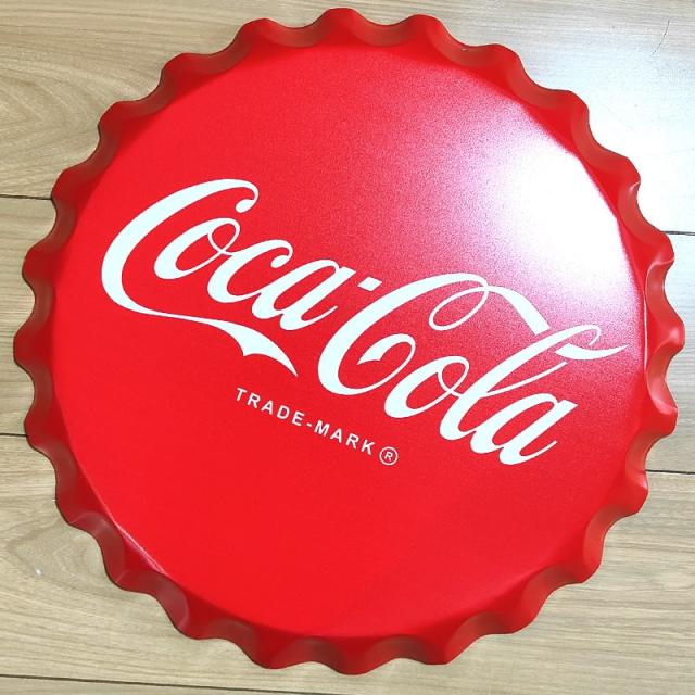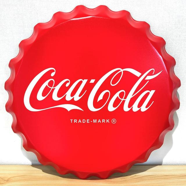 コカコーラのボトルキャップ型のおしゃれなメタルサインです。