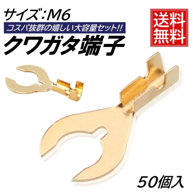クワガタ端子 M6 50個 セット 6mm アース端子 DIY くわ型端子 クワ型端子 くわがた端子 ギボシ端子