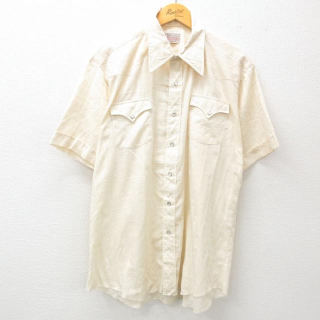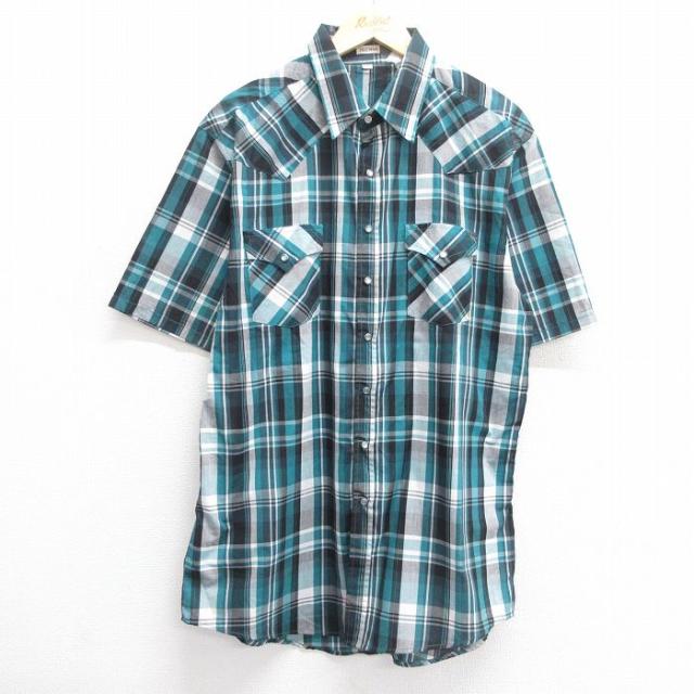 古着 ELY 半袖 ウエスタン シャツ メンズ 90年代 90s 大きいサイズ ロング丈 黒他 ブラック チェック XLサイズ 中古 トップス 中古 古着