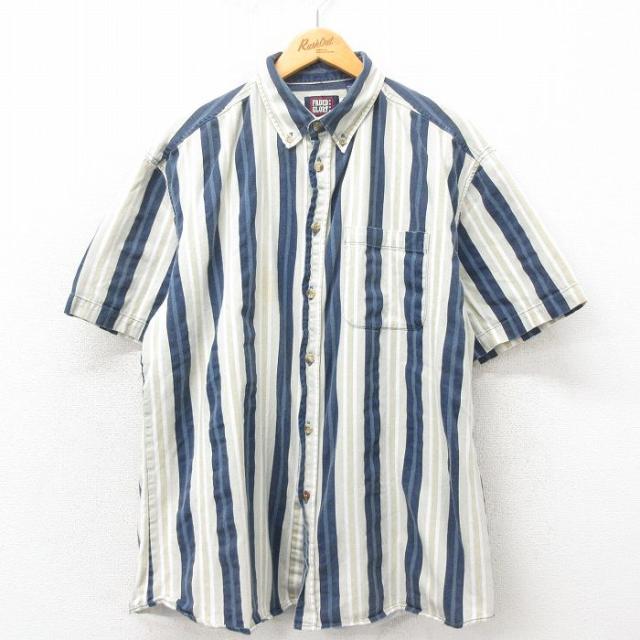 古着 FADED GLORY 半袖 シャツ メンズ 大きいサイズ コットン 薄紺 ネイビー デニム XLサイズ 中古 トップス 中古 古着