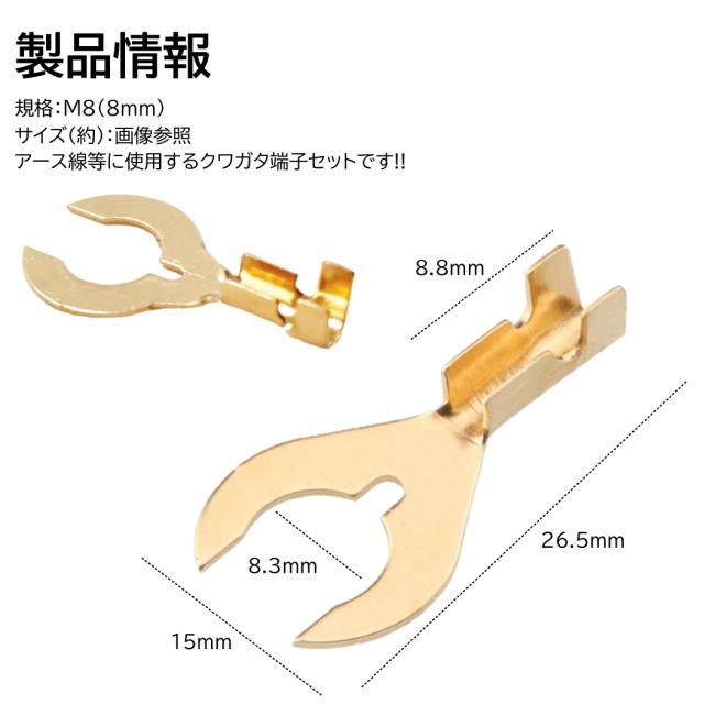 クワガタ端子 M8 100個 セット 8mm アース端子 DIY くわ型端子 クワ型端子 くわがた端子 ギボシ端子