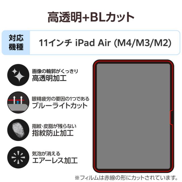 エレコム iPad Air 11インチ (M3 M2) 用 フィルム 高透明 ブルーライトカット iPadAir 11 液晶 保護フィルム ┃TB-A25MFLBLGN