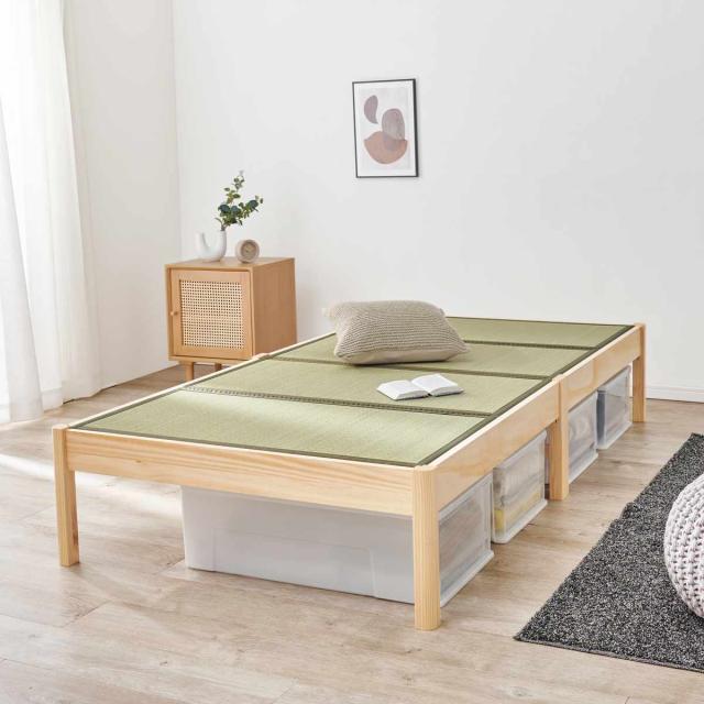 畳ベッド 3分組立 シングル 天然い草 ( ベッド 畳 工具不要 組み立て簡単 たたみ い草 ヘッドレス 和モダン ライトブラウン ナチュラル 貴船 鞍馬 天然木 木製 マット )