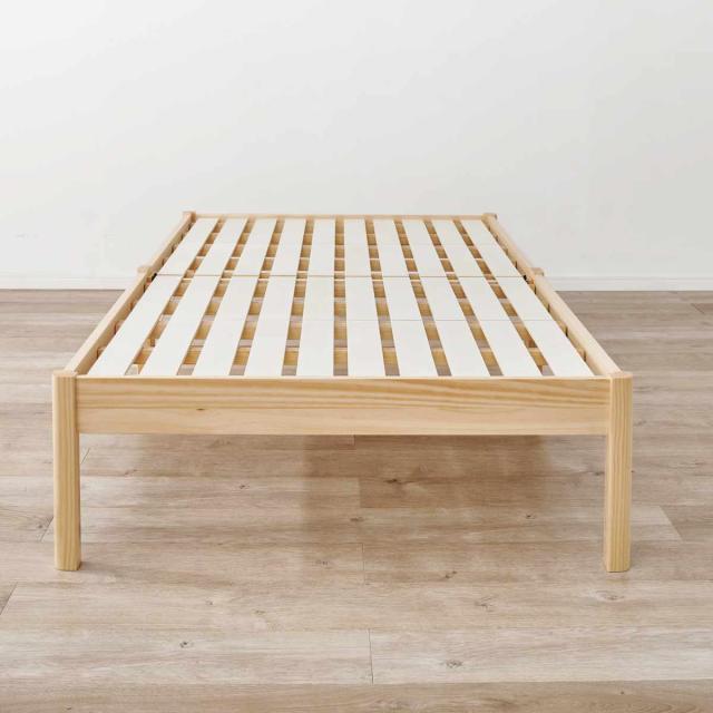 ベッドフレームには天然木の温もりが感じられる柔らかなパイン材を使用。美しい木目と経年による色の変化を楽しめます。