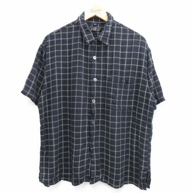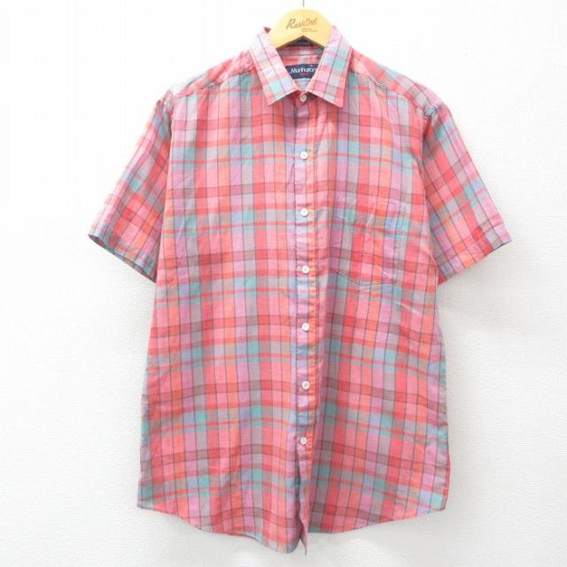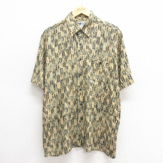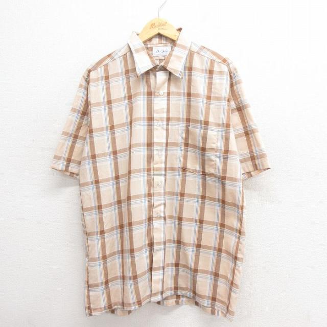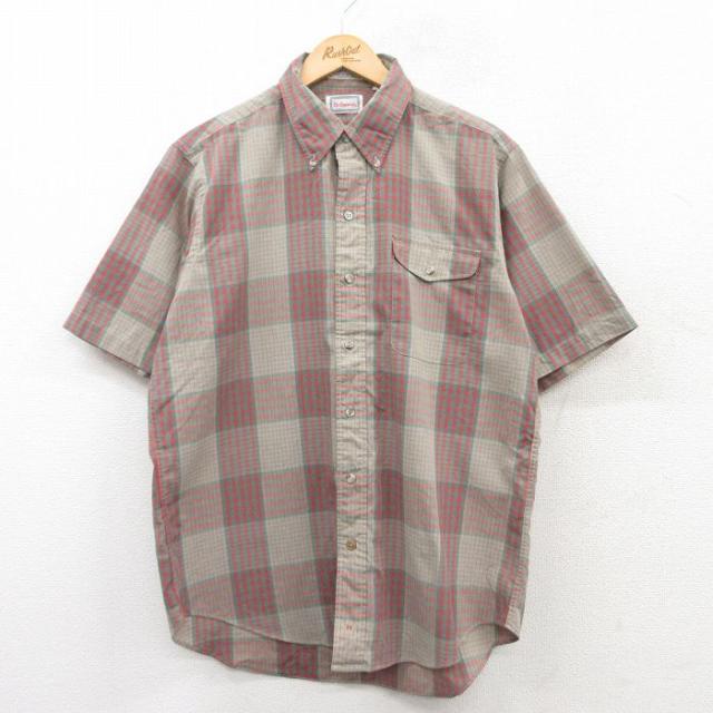 古着 半袖 シャツ メンズ 80年代 80s ベージュ他 カーキ チェック Lサイズ 中古 トップス 中古 古着