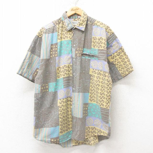 古着 半袖 シャツ メンズ 花柄 コットン 紫他 パープル Lサイズ 中古 トップス 中古 古着