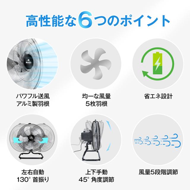 首振り扇風機 工業用 業務用 扇風機 アルミ 省エネ 風量5段階調節 首振り 角度調節 床置き パワフル 強力 換気 乾燥 洗濯物 リビング 庭 アウトドア 車庫 倉庫 工場 商業施設 オフィス 熱中症対策 cc048