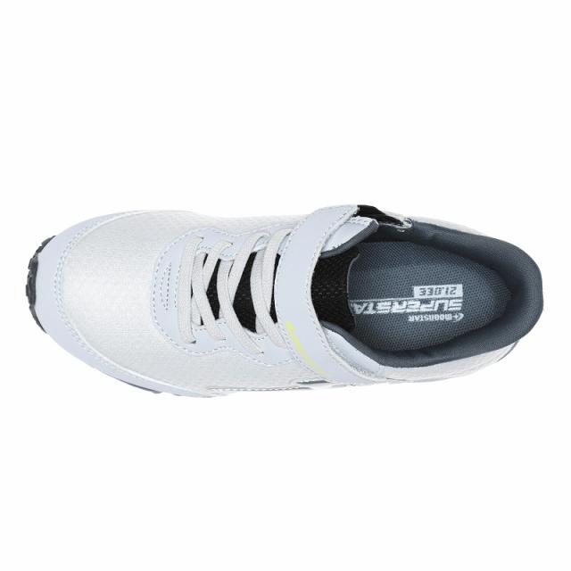子どもたちの「速く走りたい」という想いから生まれた「スーパースター」のジュニアシューズです。「速く走る」を体現するために従来のパワーバネに比べ、復元力が従来比約150%のバネを靴底に搭載しています。脱ぎ履きしやすいゴム紐×バンドタイプです。「脱ぎ履きしやすい」をコンセプトに、1ステップで脱ぎ履きラクラクな「EZGO」設計を搭載し、幅広い年齢層にも履けるようスポーティながらもシンプルなデザインが特徴の商品です。服装にも合わせやすい、ワントーンのカラーリングです。重さは21.0cmで片足約160gです。【パワーバネ】ムーンスター独自開発の特殊なゴムを靴底に搭載し、地面を踏みこむときにパワーを蓄積し、蹴り出すと同時に一気にパワーを推進力に。【カウンターボックス】子どもの柔らかくゆがみやすい足を箱型構造でしっかり支えます。【Ag+抗菌防臭】銀イオンの抗菌作用でにおいのもととなる菌の増殖を抑制し、防臭効果を発揮します。【洗えるインソール】インソールは取り出して洗えるのでいつも清潔に保てます。【耐摩耗ラバー】靴底にはすり減りが少なく、高い耐久性を発揮するラバーを採用しています。【軽量設計】軽くなるよう工夫・・・
