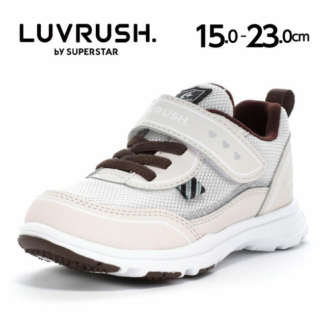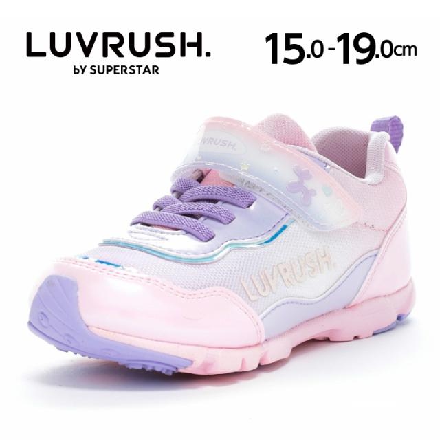 『もっと可愛く!もっと速く!女の子のスポーツシーンを足元から応援!』をコンセプトにガールズ向けに誕生した「ラブラッシュ バイ スーパースター」のキッズシューズです。「速く走る」を体現するために搭載されたパワーバネが走りをアシストします。見る角度で色味が変わるパール素材が特徴の可愛いプリズムカラーの商品です。フォトフレームをゆめかわパーツでデコるイメージを甲バンドに表現しています。運動会や体育の時間、クラブ活動等の走るシーンにおすすめです。重さは17.0cmで片足約100gです。【パワーバネ】ムーンスター独自開発の特殊なゴムを靴底に搭載し、地面を踏みこむときにパワーを蓄積し、蹴り出すと同時に一気にパワーを推進力に。【カウンターボックス】子どもの柔らかくゆがみやすい足を箱型構造でしっかり支えます。【Ag+抗菌防臭】銀イオンの抗菌作用でにおいのもととなる菌の増殖を抑制し、防臭効果を発揮します。【洗えるインソール】インソールは取り出して洗えるのでいつも清潔に保てます。【耐摩耗ラバー】靴底にはすり減りが少なく、高い耐久性を発揮するラバーを採用しています。【軽量設計】軽くなるよう工夫を施した設計です。