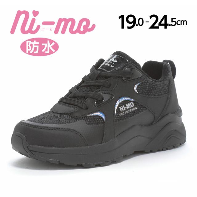 秋冬新作 ムーンスター ニーモ ジュニアスニーカー 子供靴 NM J135 ブラック トレンドを取り入れ「女の子の可愛くなりたい」をサポート! 防水 軽量設計 抗菌防臭 紐靴 女の子 小学生 スタイルアップ 厚底 通学