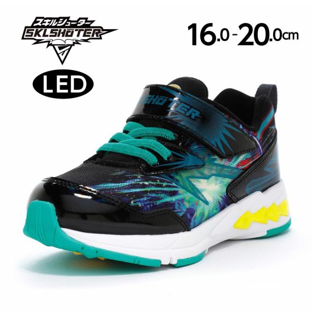 秋冬新作 送料無料 ムーンスター スキルシューター キッズスニーカー 子供靴 SK 0069LE ブラック スキルを解き放て 抗菌防臭 洗えるインソール 光スキル LED 光る 視認性 夜間安全 夏祭り キャンプ 男の子 通学