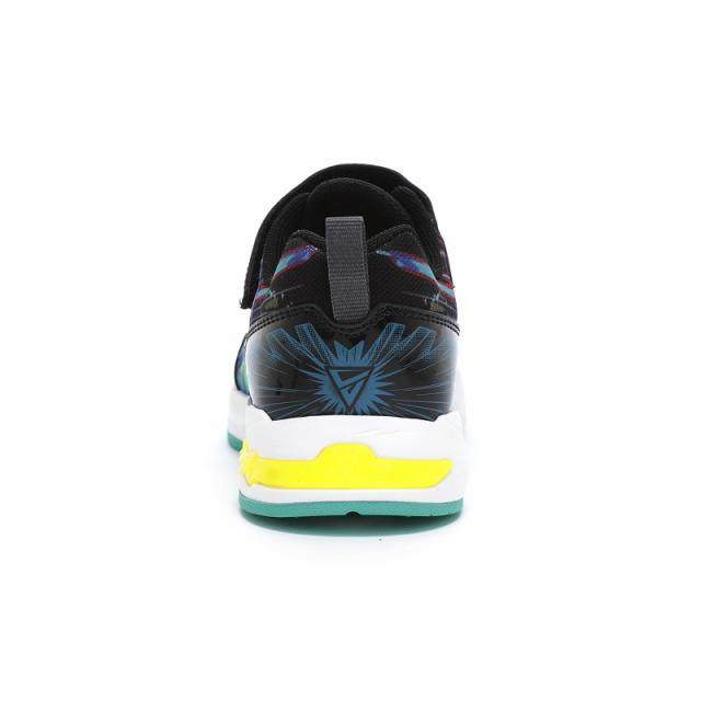 男の子の様々な潜在能力を解き放つシリーズ「スキルシューター」の「光スキル イッセン」です。「スキルを解き放て」をコンセプトに子どもたちの多様化するシーンに合わせた「SKL」をアウトソールに搭載しており、踏み込む際に靴底のSKLが地面を捉え、あらゆる方向への蹴り出しをアシストします。「光スキル」は神々しさを表現したソールにLED部品を搭載。振動によって踵が光り、夜間の安全性を高めます。発光回数の目安は約30万回、およそ2か月光ります。脱ぎ履きしやすいゴム紐×バンドタイプです。外遊びはもちろん、運動会や体育の時間等のスポーツシーンにもおすすめです。アッパーには閃光イメージのグラフィックをプリントし、疾走感を演出。光を連想するカラーリングがポイントです。重さは17.0cmで片足約150gです。【Ag+抗菌防臭】銀イオンの抗菌作用でにおいのもととなる菌の増殖を抑制し、防臭効果を発揮します。【洗えるインソール】インソールは取り出して洗えるのでいつも清潔に保てます。【耐摩耗ラバー】靴底にはすり減りが少なく、高い耐久性を発揮するラバーを採用しています。