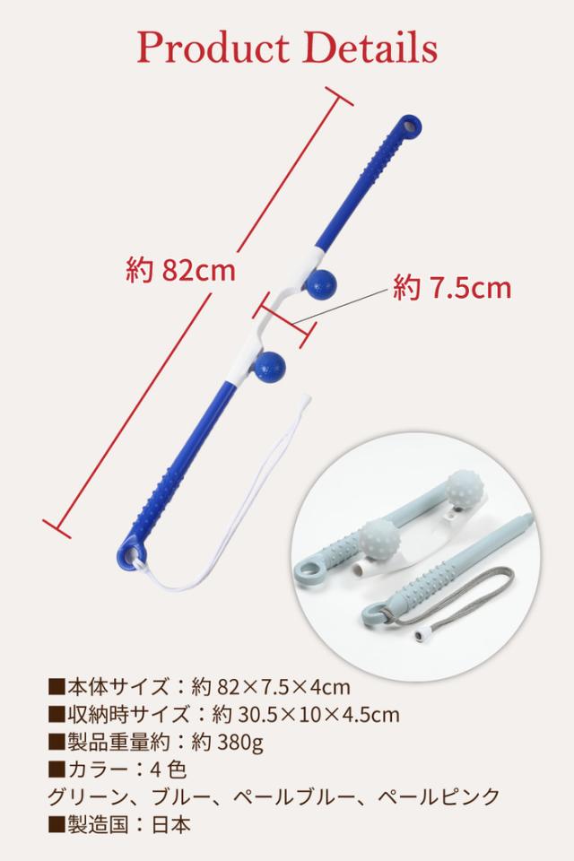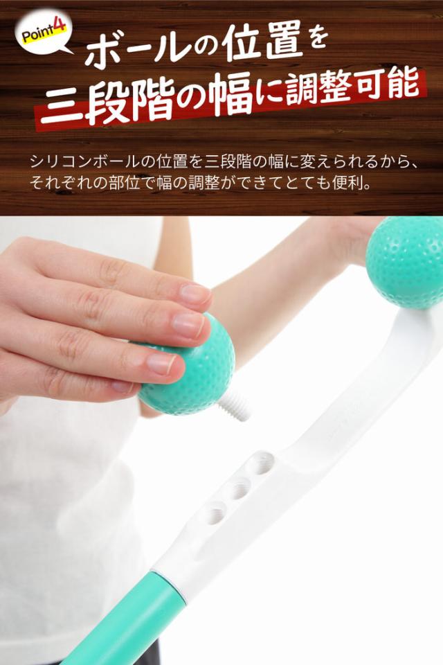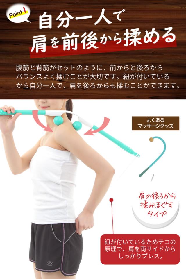 紐が付いているからテコの原理で一人で前後でバランスよく揉むことができます。
