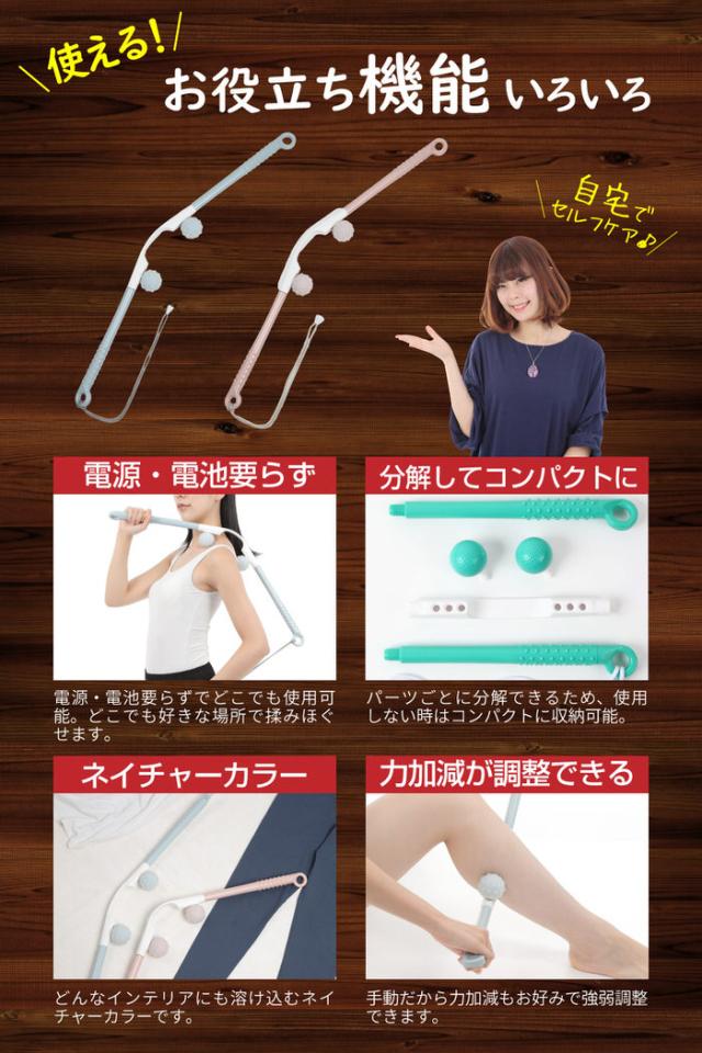 ●自分一人で肩を前後から揉むことができます
