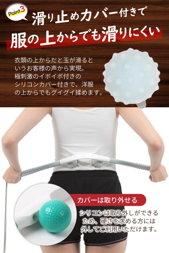 滑り止めシリコンカバー付きだから洋服の上からでもグイグイ揉めます。