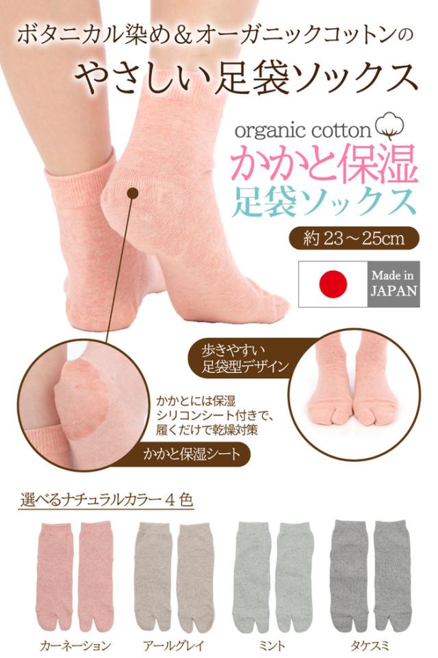 オーガニックコットンを天然植物(ボタニカル)で染めた環境に優しい足袋ソックス