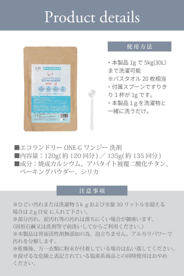 無添加洗濯洗剤 エコランドリー ONE-G ワンジー | 洗濯洗剤 洗濯 無添加 洗衣液 粉 よく落ちる 詰め替え カビ 洗浄力 おすすめ