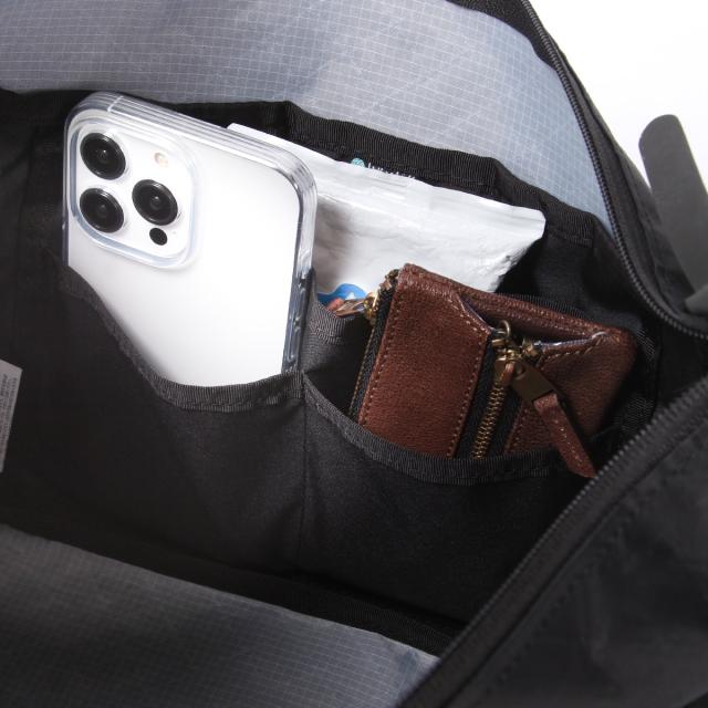 背面側には小物の仕分けができるオープンポケットを3つ配置。
