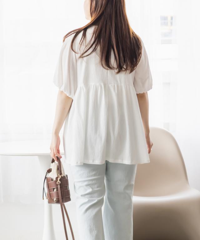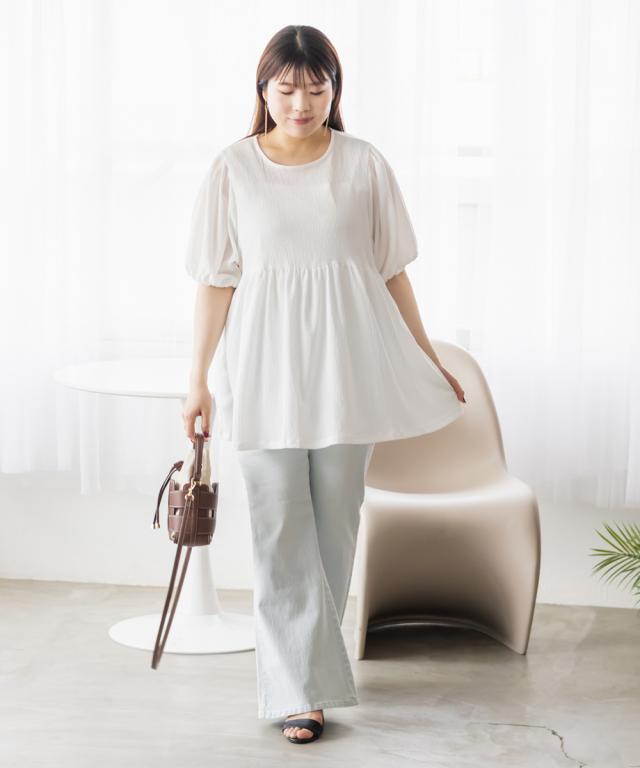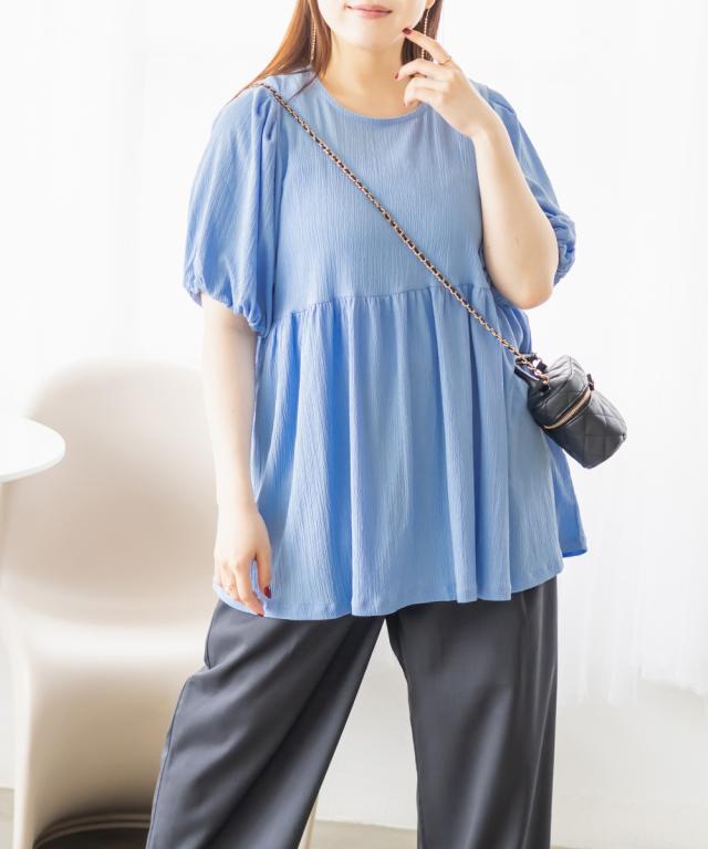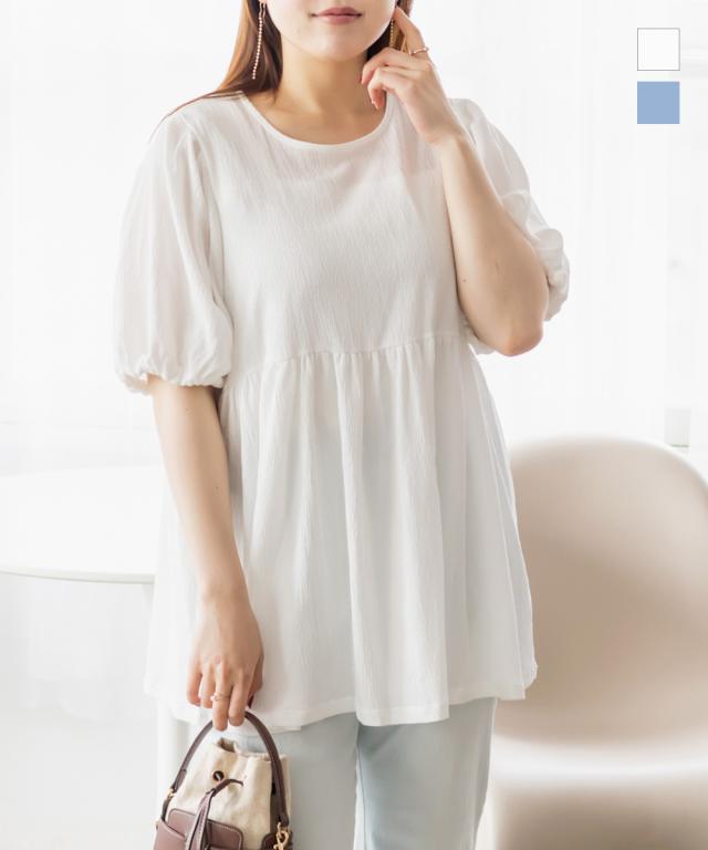 大きいサイズ/レディース/3L/4L/袖バルーンペプラムカットプルオーバー