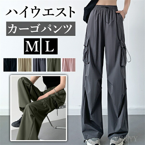 カーゴパンツ ハイウエストパンツ ワイドズボン レディース お家時間 パンツ ボトムス ボトム パラシュートパンツ シンプル カッコいい デイリー 春 夏 秋 リラックスタイム 大人 M L ゆったり 涼しい 太もも 体形カバー お洒落