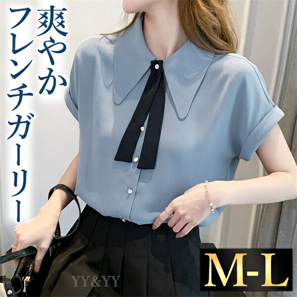 シャツ トップス ブラウス ロールアップ 制服 スクールガール JK風 リボンタイ 半袖 かわいい レディース 大人 フレンチガーリー シンプル 春 夏 秋 韓国ファッション M L 清楚 ナチュラル きれいめ オフィスカジュアル 夏服 ブルベ 無地 20代