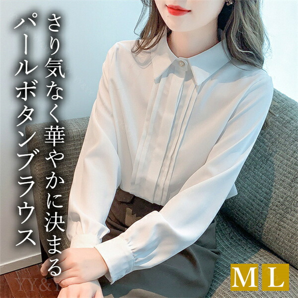 ブラウス 長袖 かわいい レディース トップス topsパールボタンプリーツ 無地 コンパクト シンプル インナー デイリー オフィス 春 夏 秋 韓国ファッション カットソー 大人 M L Uネック Vネック ベーシック レース ボーダー OL