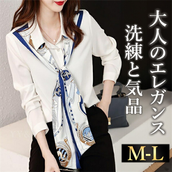 | 商品説明 | 【大人上品デザイン】スカーフタイ付きレディース長袖ブラウス|やわらかな落ち感のある素材が涼し気で軽やかな印象を与えるボウタイブラウス。クラシカルマリン柄のスカーフは上品なアクセントに。とろみ素材の白ブラウスで着回し力も高い!華やかさもありつつ落ち着いた大人のマリンスタイルを楽しめる上品シャツ。スカーフは一体型で落ちてくる心配もなし!楽に楽しみつつ大きめに作られているから結び方でコーデの幅もさらに広がる。カジュアルにも綺麗目にも活躍できる万能ブラウス |