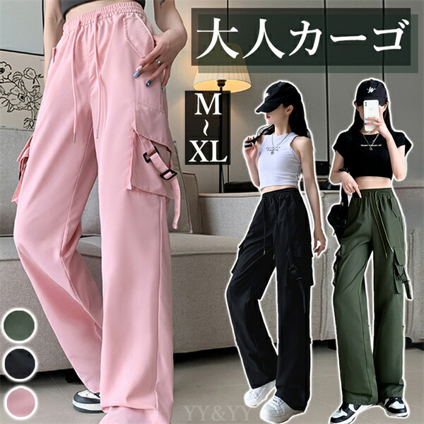 ミリタリー 風 カーゴパンツ ワイドパンツ ワイドズボン レディース お家時間 パンツ ボトムス ボトム パンツ ワイド ロング丈 シンプル カッコいい デイリー オフィス 春 夏 秋 大人 M L XL ゆったり 太もも 体形カバー お洒落