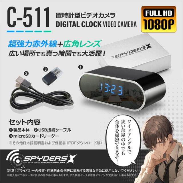 ■C-511 フルHD 置時計型カメラ【小型カメラ】【オンスクエア】【スパイダーズX】