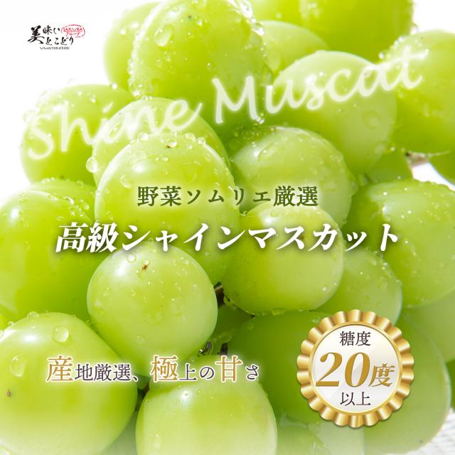 野菜ソムリエが太鼓判を押す果実はほんの一握りだけ・・・(数あるシャインマスカットの中でも3パーセント程と言われております。) 野菜ソムリエお墨付きのシャインマスカットを是非ご賞味ください。
