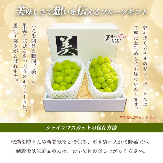 [送料無料] 美味いとこどり 巨大 シャインマスカット 2房 約550〜650g 1房 高級 高糖度平均20度超え 旬な産地を厳選