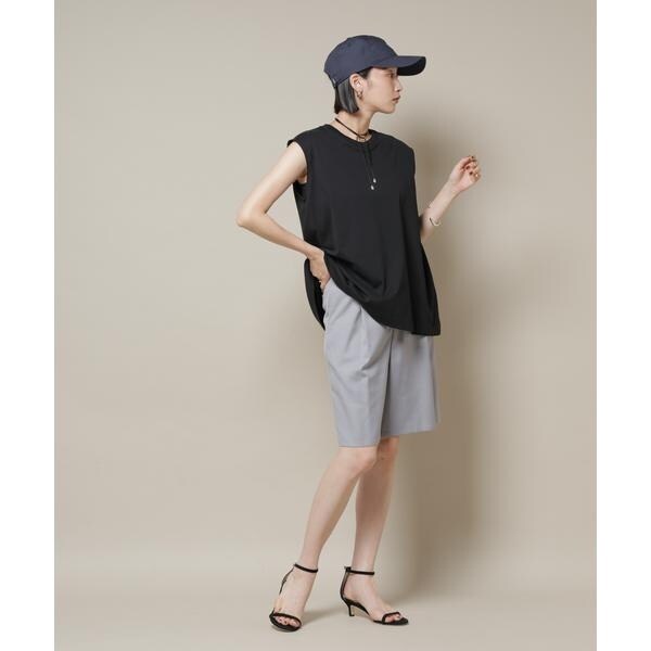 大人の女性が穿きやすい上品な印象のワンタックショートパンツ。程よい厚みのしっかりした素材で仕立てたワンタックデザインの綺麗なシルエットが魅力。同素材展開のブラウスとのセットアップスタイルもおすすめです。